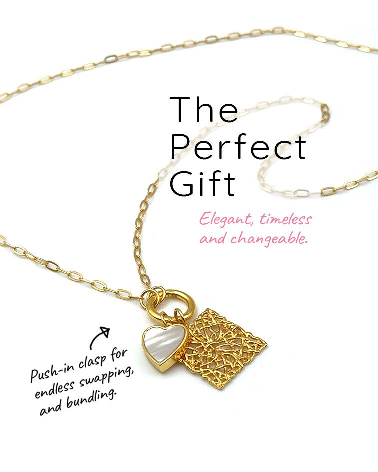 The circular clasp is the center piece of the LINK concept. They are your tool to linking, swapping, and bundling. All pendants fit our chains with a circular LINK clasp. Find the join, gently push straight down and link (do NOT pull open).