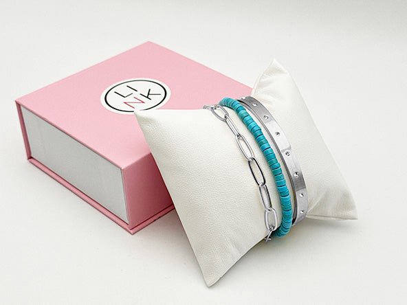 Regular price $79.80The circular clasp is the center piece of the LINK concept. They are your tool to linking, swapping, and bundling. All pendants fit our chains with a circular LINK clasp. Find the join, gently push straight down and link (do NOT pull open).