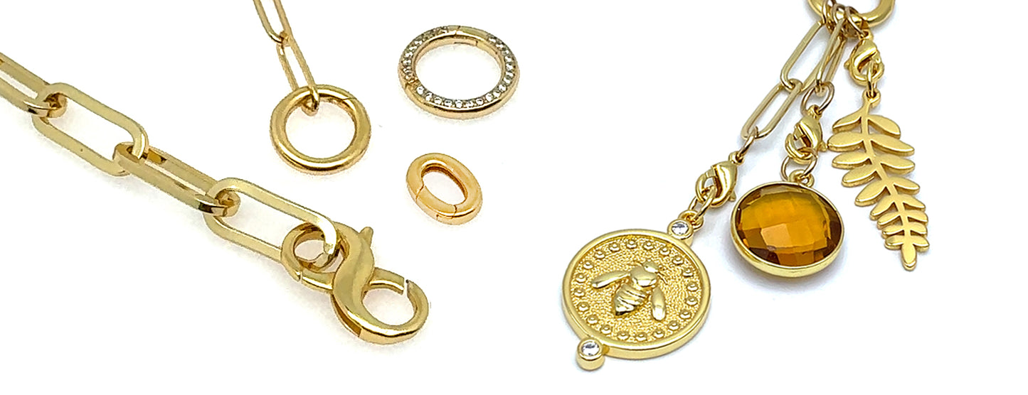 The circular LINK clasp, Infinity clasp and Designer Heart clasp are interchangeable.
