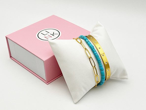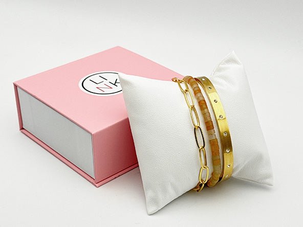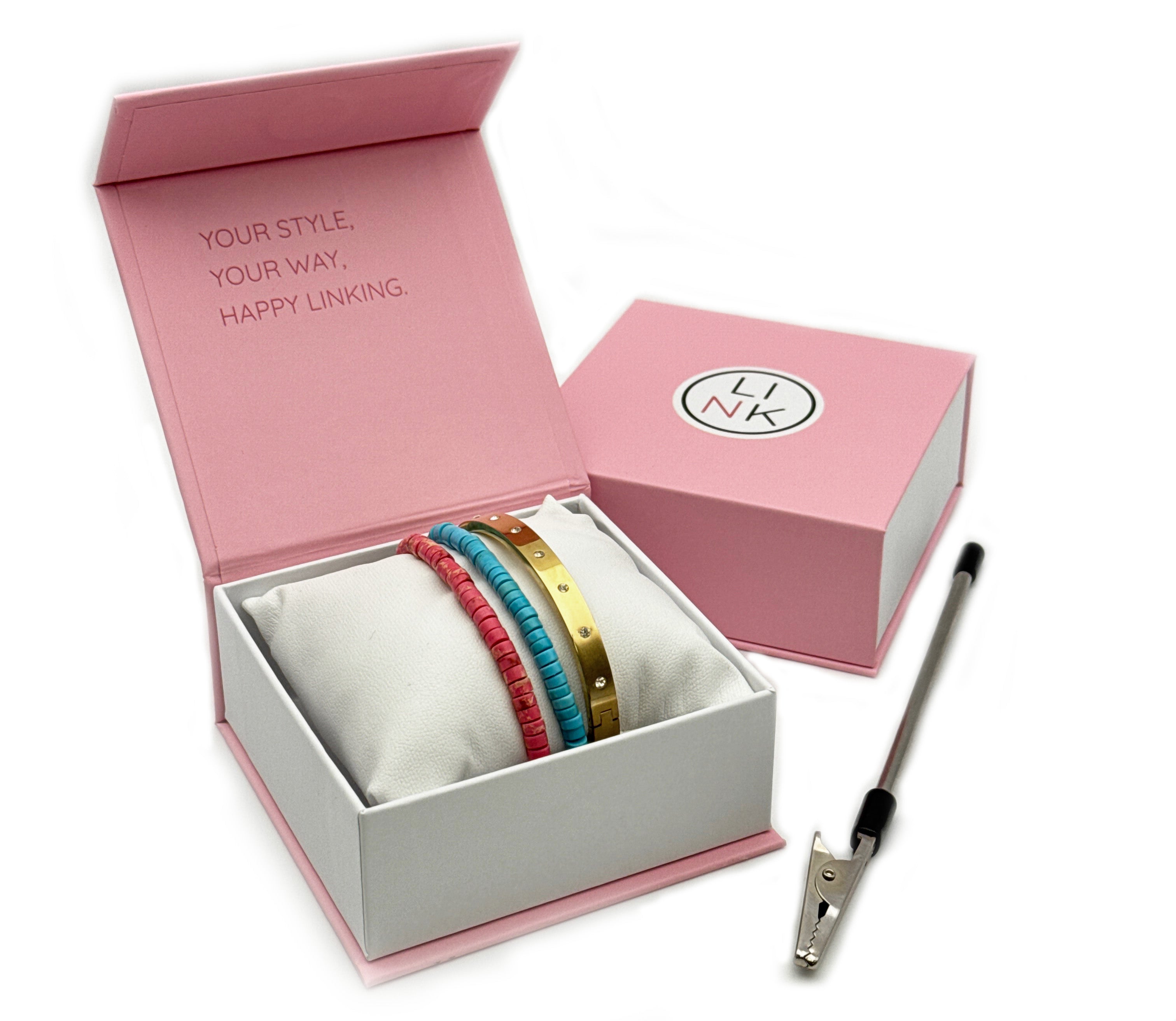 Arrives beautifully placed on our display cushion, boxed in the Deluxe LINK Gift Box, and includes a FREE Bracelet Helper Tool. READY TO GIFT! 💖